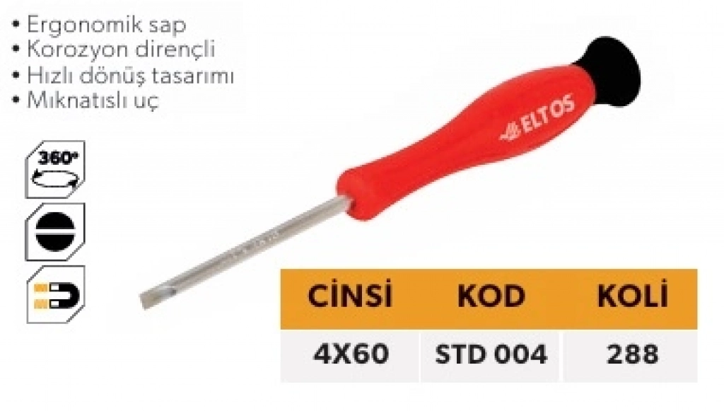 ELTOS SAATÇİ TORNAVİDA 4X60 DÜZ