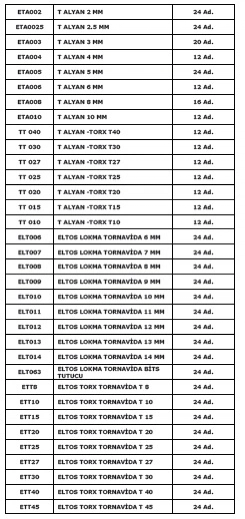 ELTOS STAND NO :1 - 67 KALEM / 554 PARÇA ÜRÜN