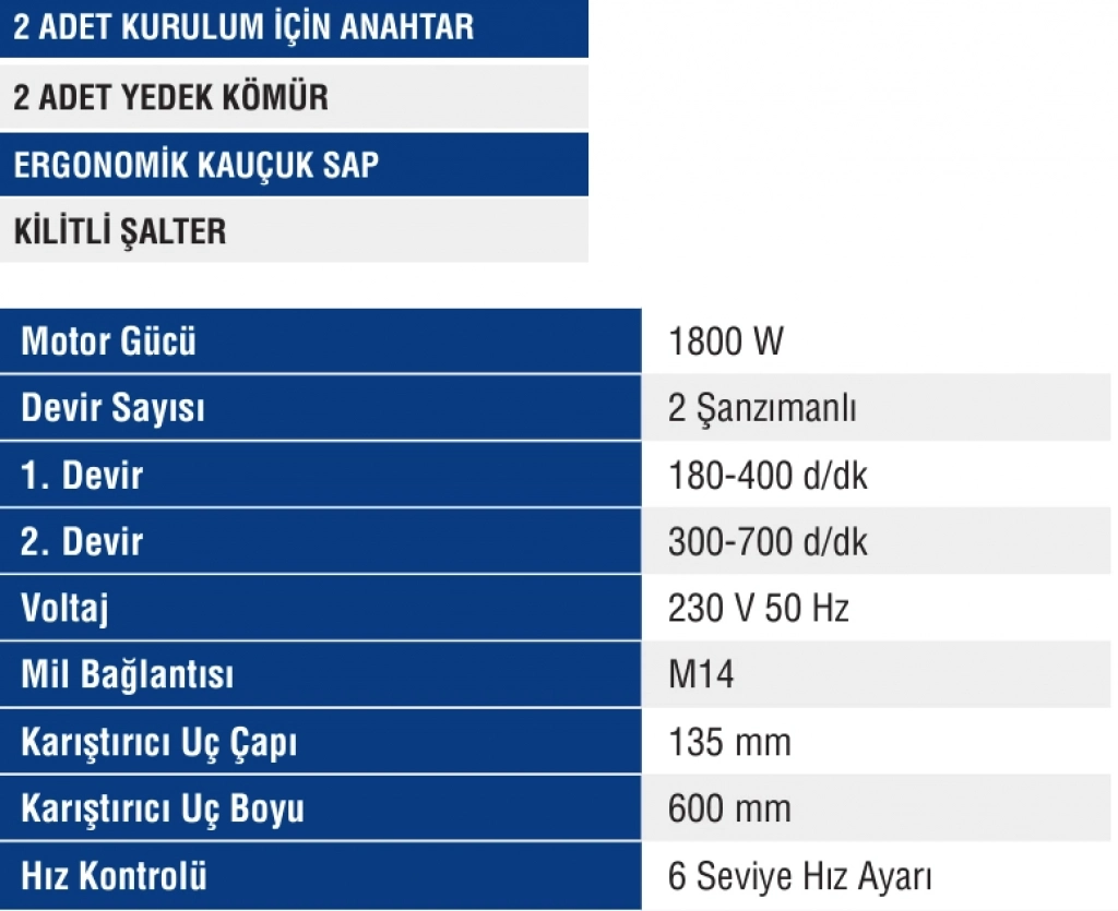 MERCURE BOYA VE HARÇ KARIŞTIRICI MİKSER 1800 W.