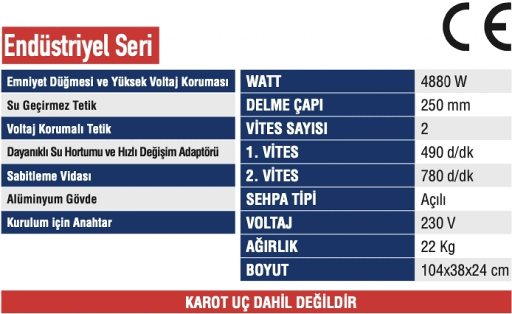 MERCURE KAROT MAKİNASI STANDART SEHPA ENDÜSTRİYEL 4.880 Watt MC-7600 S