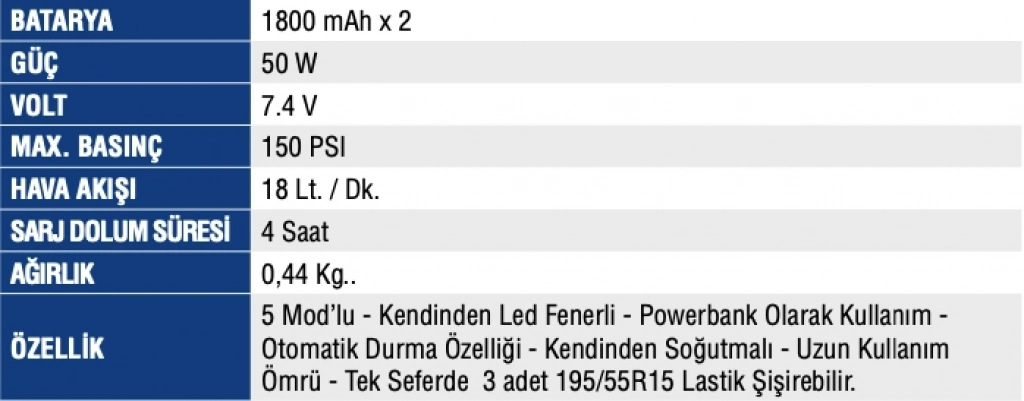 MERCURE AKÜ TAKVİYE LASTİK ŞİŞİRME ŞARJLI MC-5647